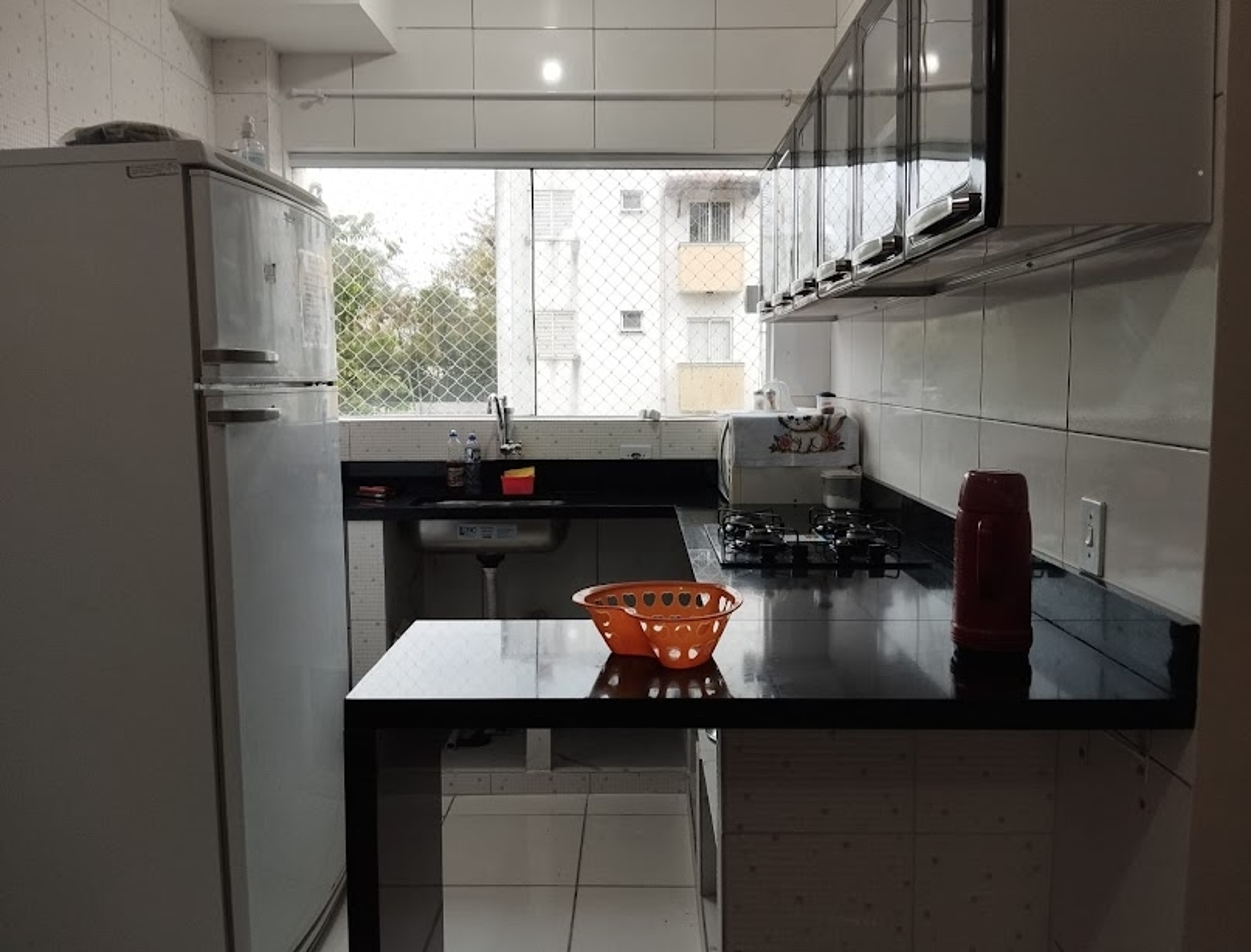 1 geladeira duplex, mesa grande, fogão 4 bocas e armários