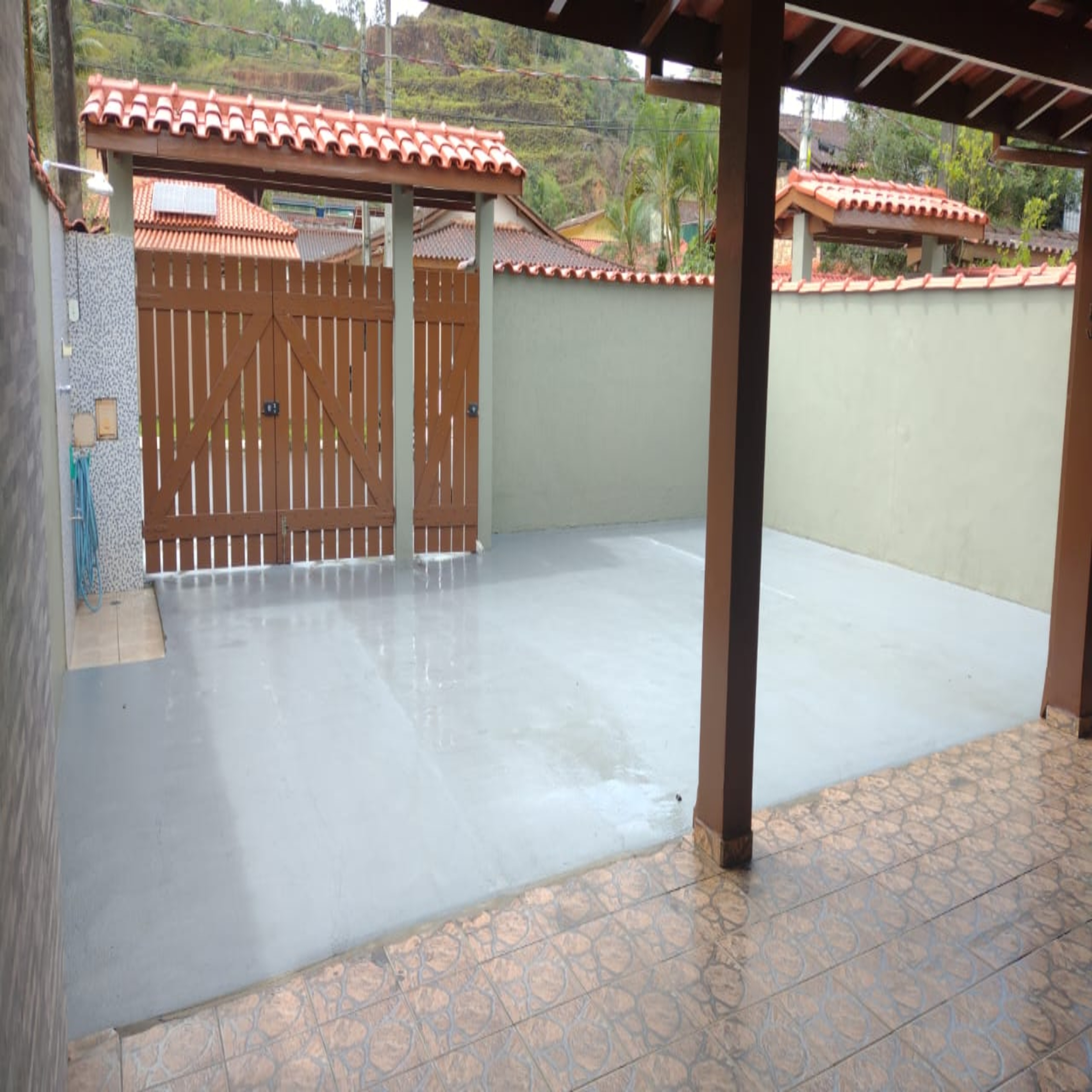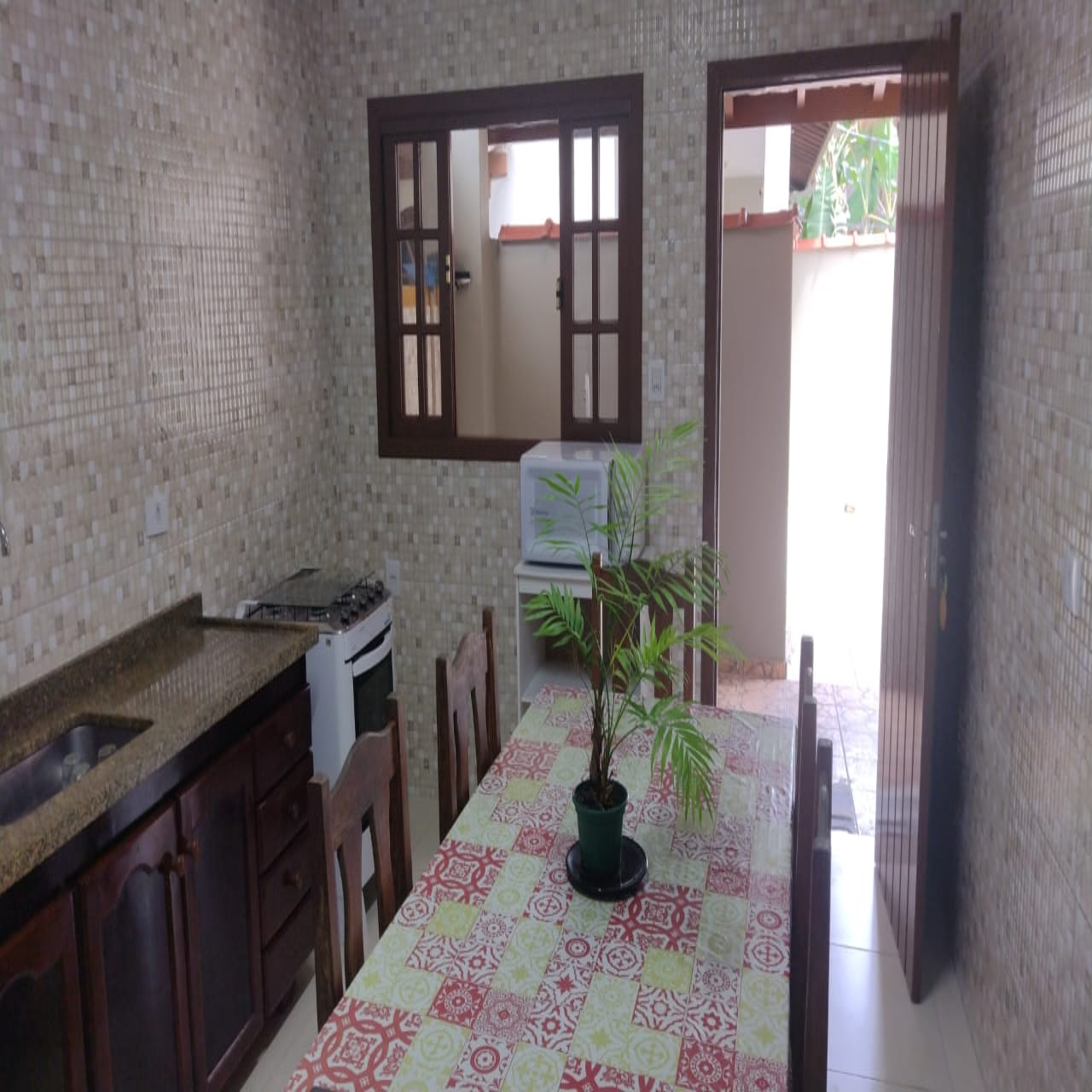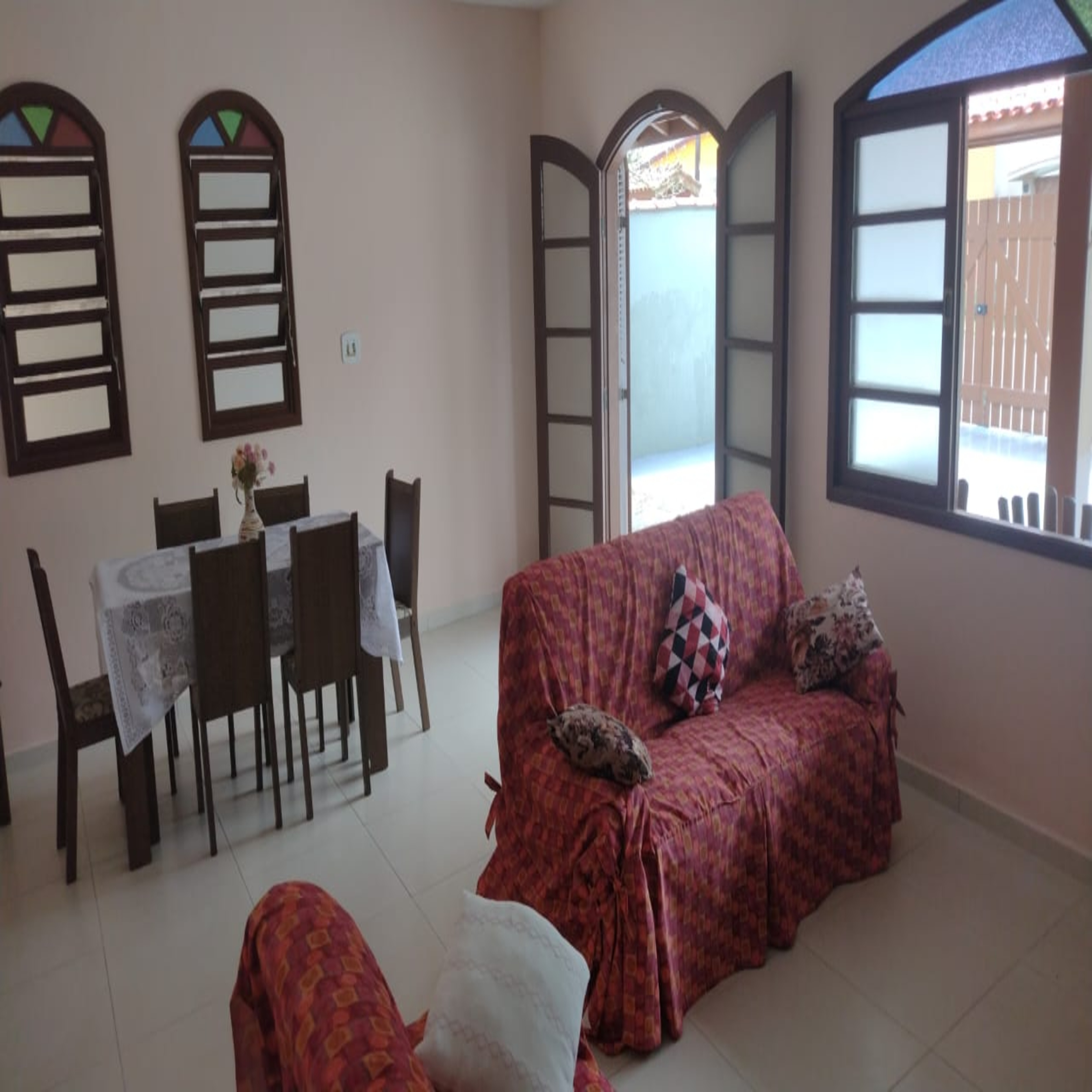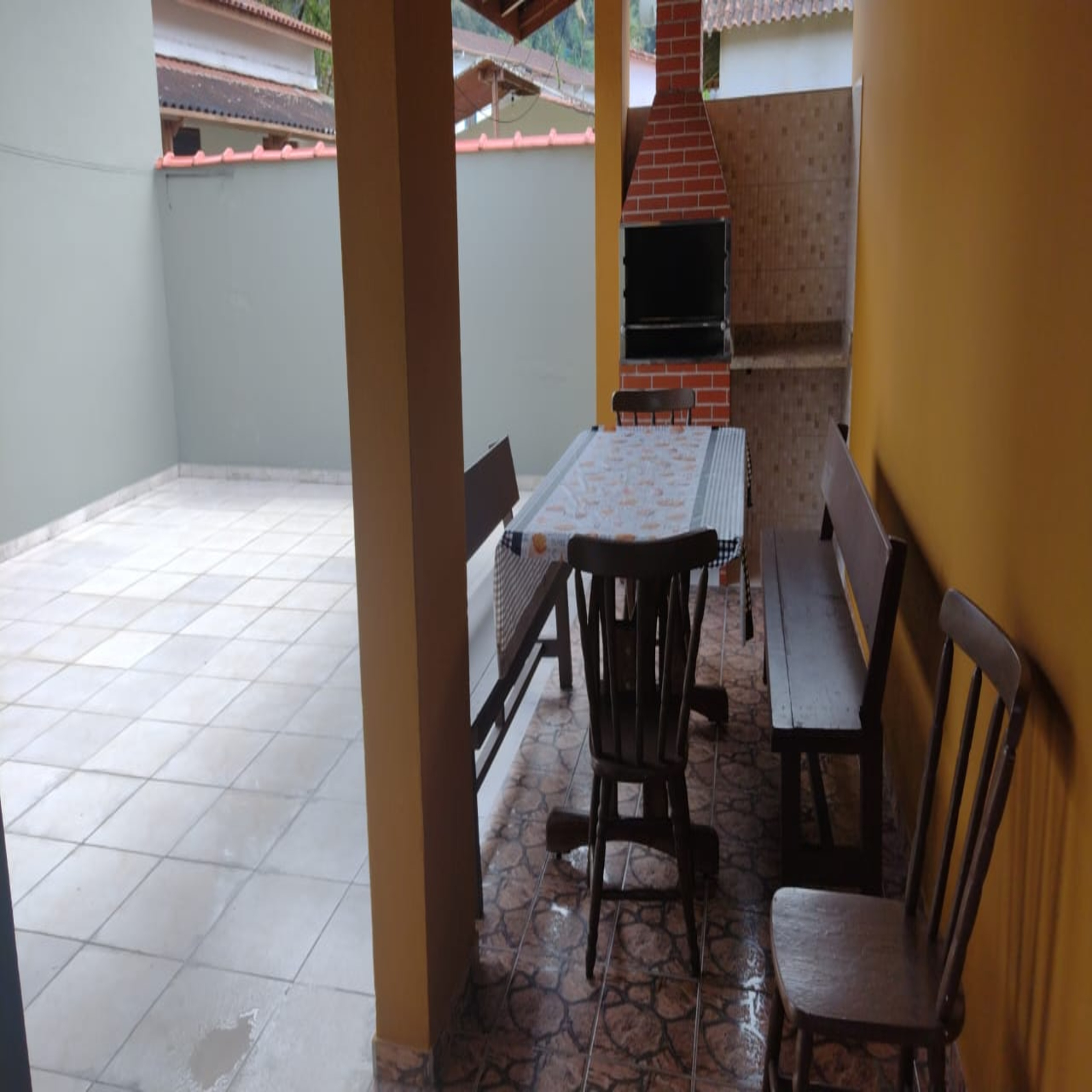 Casa murada, piso de lajotas frias, móveis bem conservados.
