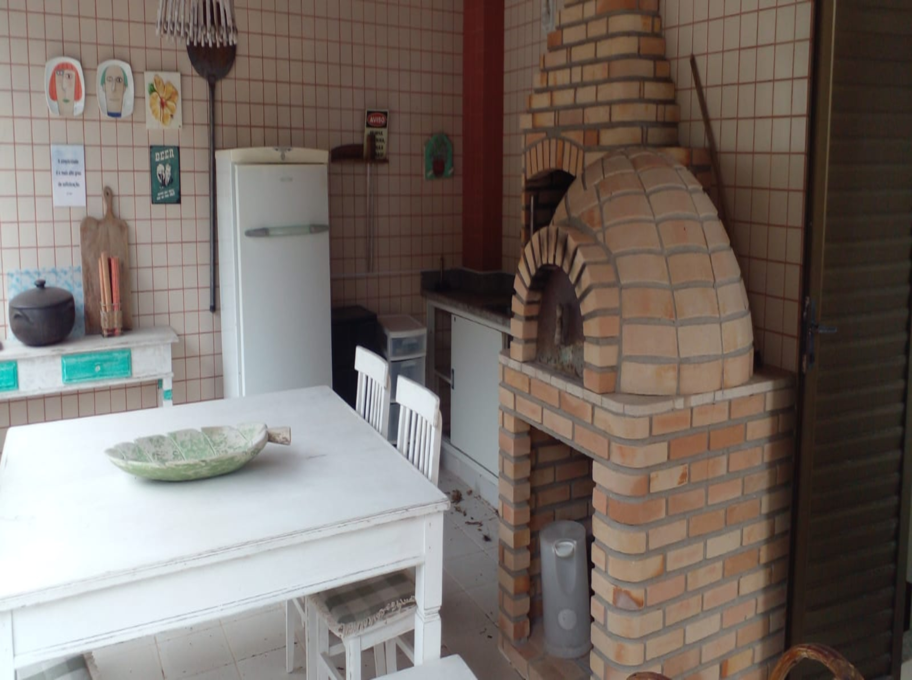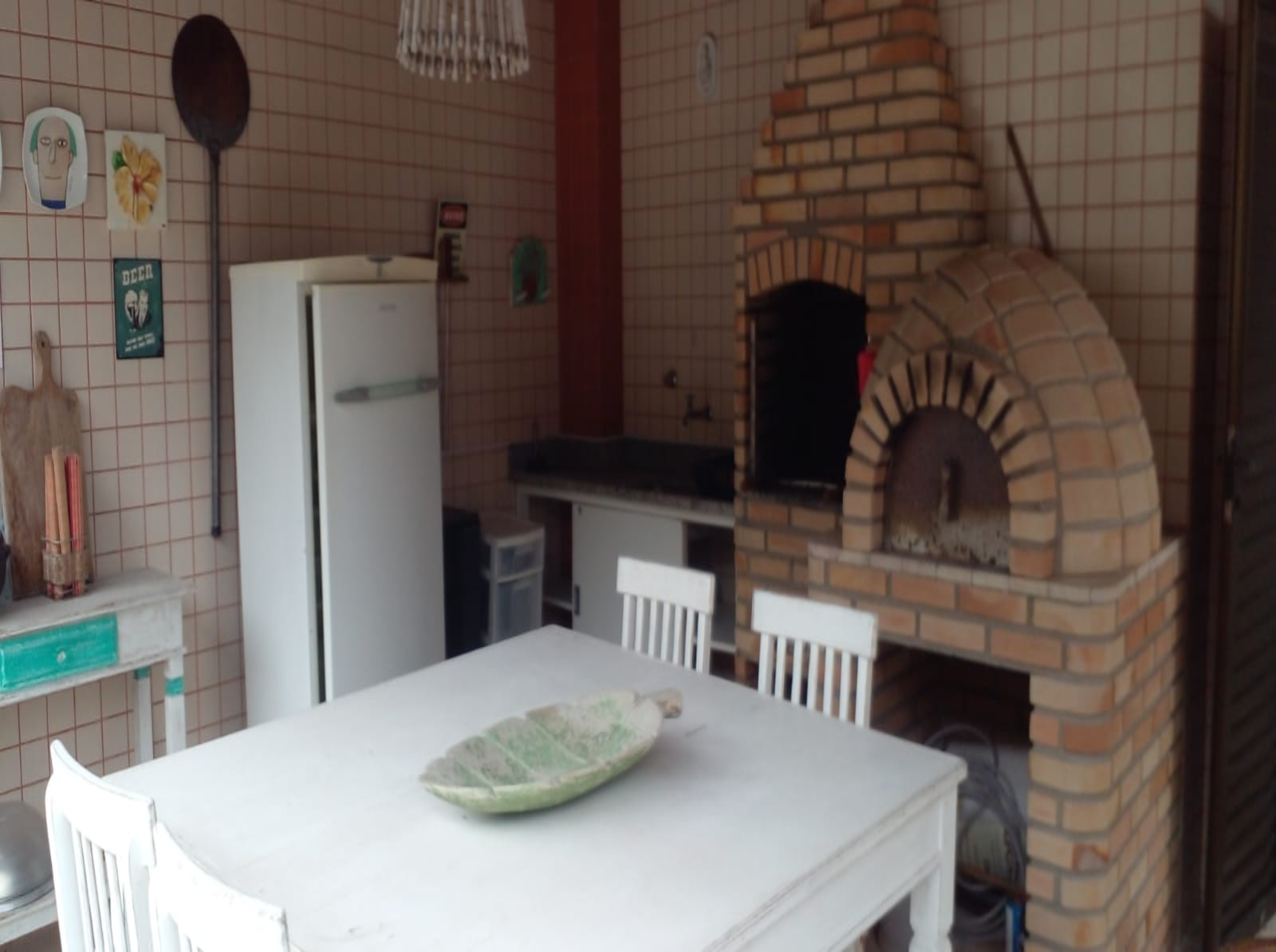 ESPAÇO GOURMET COM CHURRASQUEIRA E FORNO A LENHA - GELADEIRA E MESAS